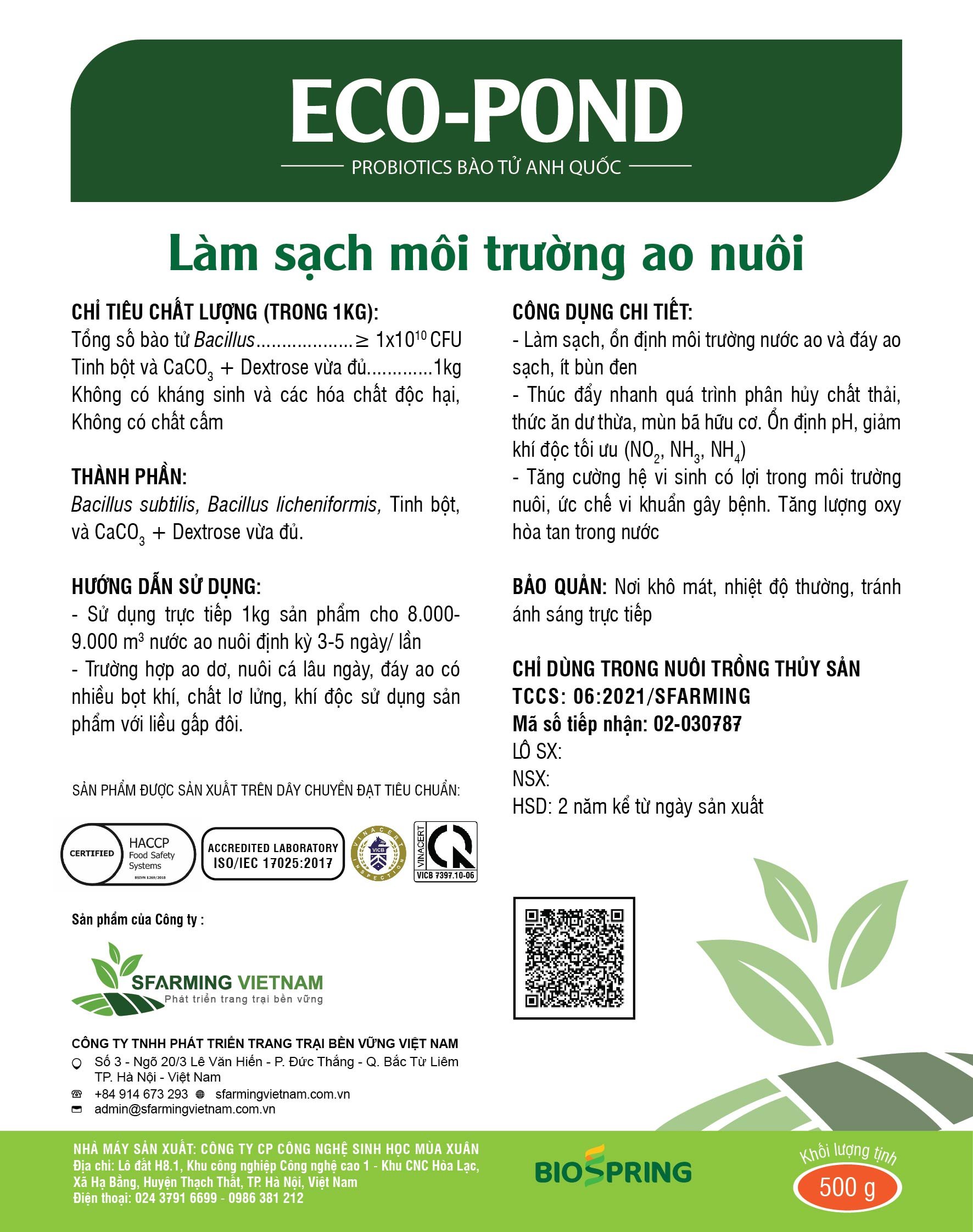 - Sản phẩm ECO-POND giúp phân hủy nhanh các hợp chất hữu cơ, lipid, cellulose bằng cách tiết ra enzyme protease phân hủy nhanh các hợp chất hữu cơ, enzyme lecitinase thủy phân các chất béo phức hợp và enzyme cellulase biến đổi cellulose thành đường, canh tranh nguồn dinh dưỡng và oxy hòa tan với các vi sinh vật gây thối.