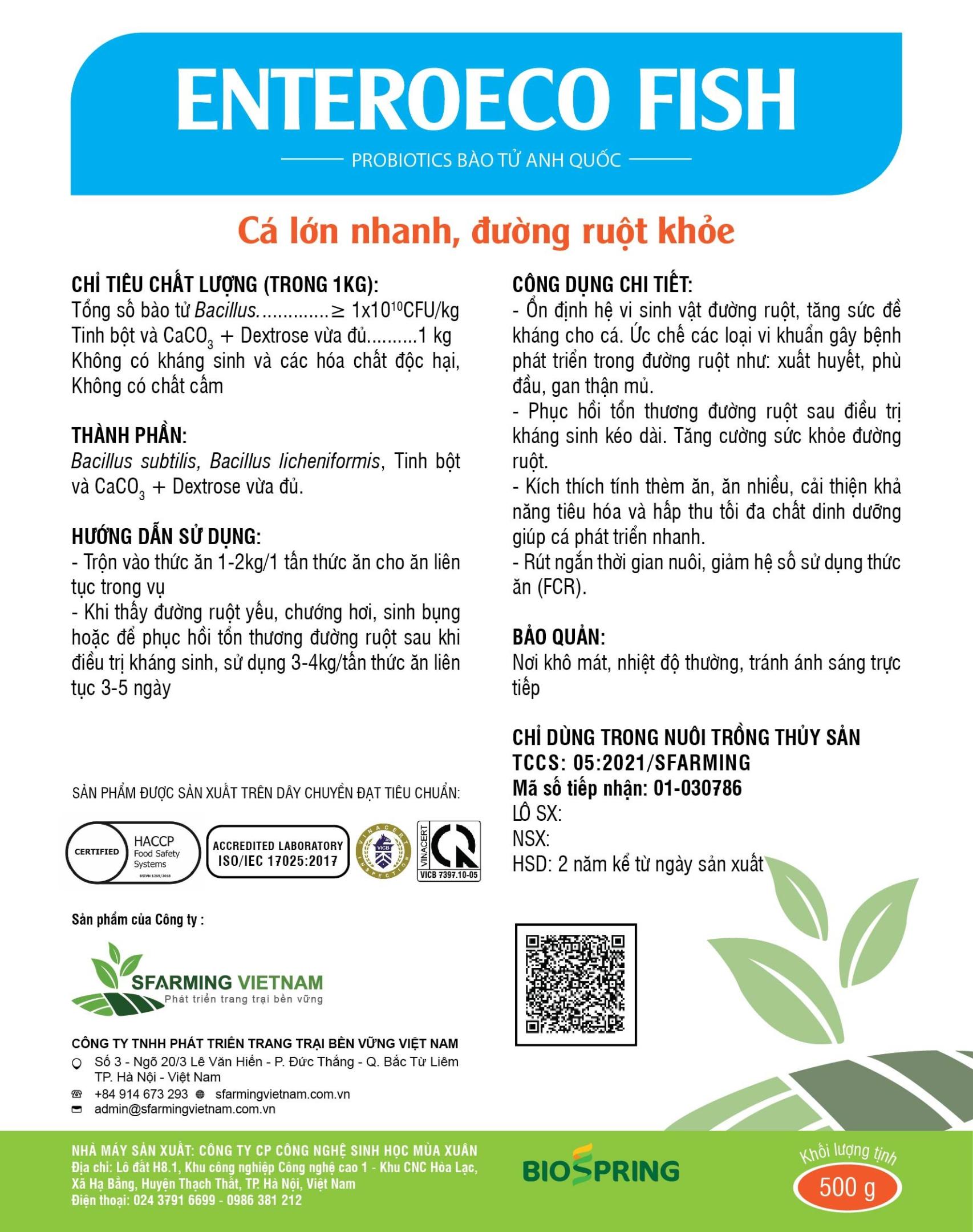 ENTEROECO FISH là sản phẩm Probiotics có chứa tổ hợp vi sinh vật có lợi với mật số cao, dạng bào tử, bền với các tác nhân sinh học, vật lý được chuyển giao độc quyền từ Đại học Holloway, Anh Quốc.
